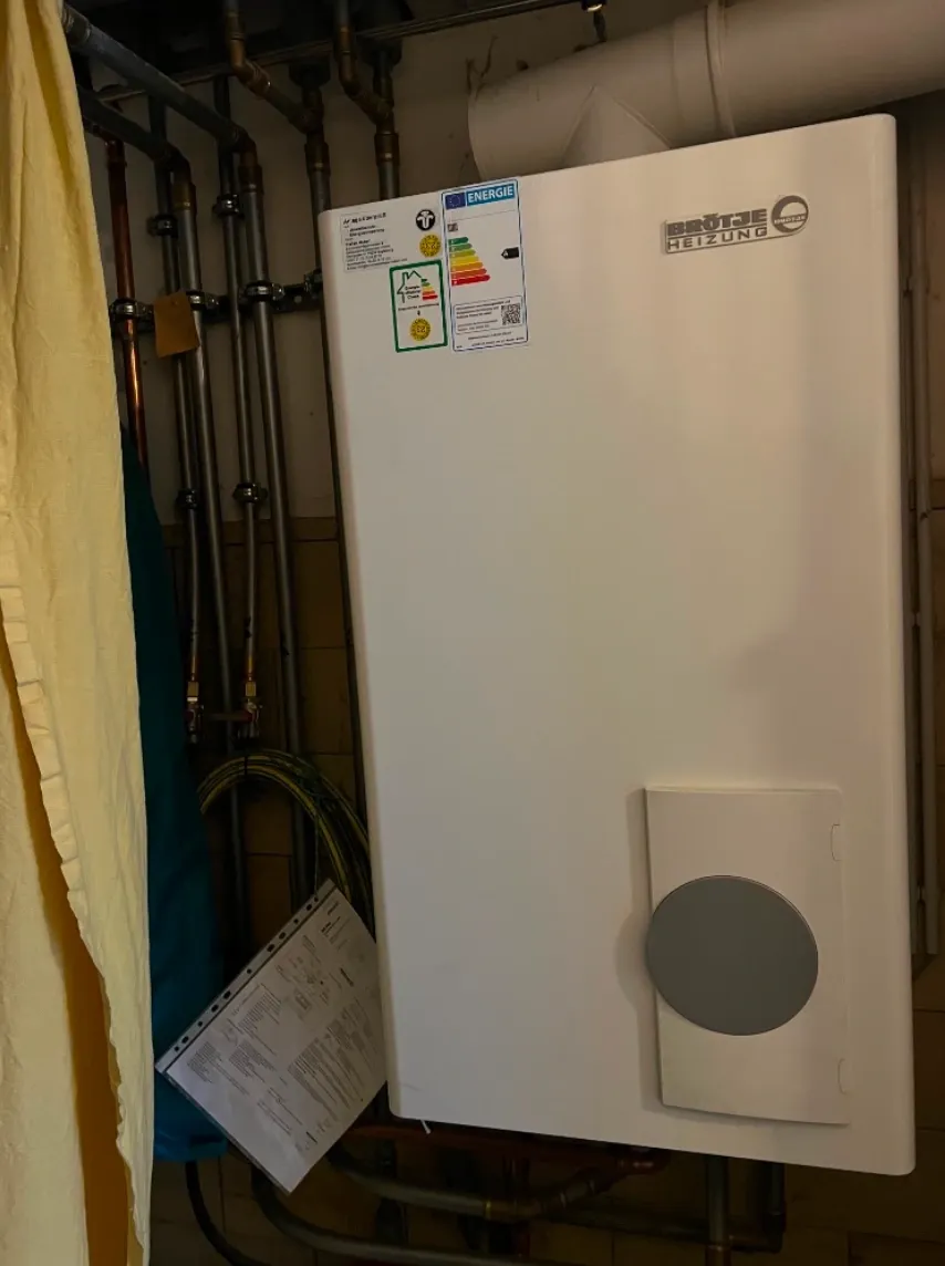 Die bestehende Gastherme (Baujahr 2007) versorgte das Mehrfamilienhaus mit Heizung und Warmwasser. Die Technik war über mehrere Elemente verteilt, der Raum beengt und energetisch nicht mehr zukunftssicher.